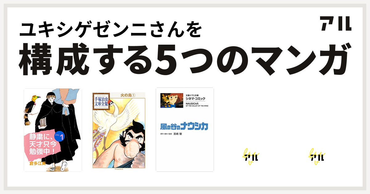 ユキシゲゼンニさんを構成するマンガは静粛に 天才只今勉強中 火の鳥 風の谷のナウシカ ななこsos 石の花 私を構成する5つのマンガ アル